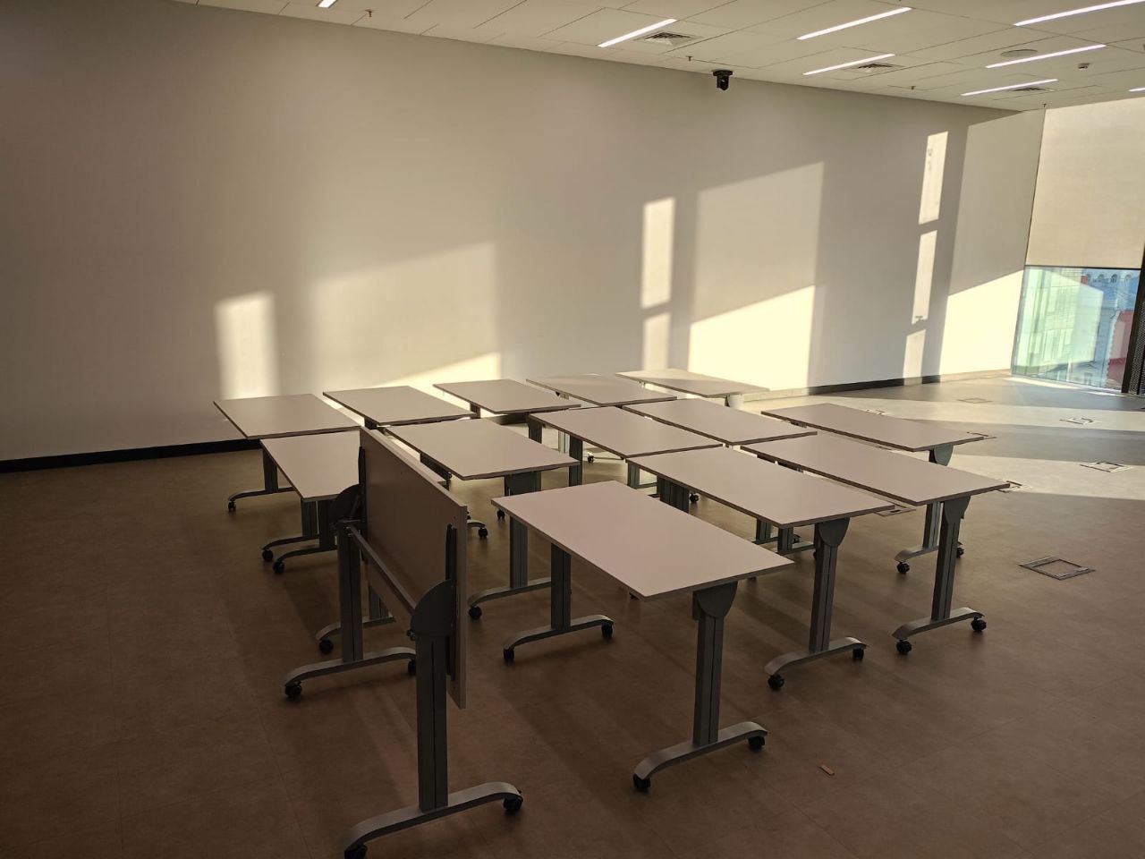 Серия столов-трансформеров на колесах Mobile System от фабрики RIVA - это демократичное и качественное решение для организации тренингов, лекций, конференций и других публичных мероприятий. С помощью складных мобильных слов мы сможете провести эффектную презентацию или организовать эффективные переговоры, при этом мобильно управляя офисным пространством. Перед началом встречи, Вы выстраиваете необходимую конфигурацию мобильных столов Mobile System, столы скрепляются с помощью соединительных элементов и фиксируются. Это очень легко, так как столы оборудованы роликами со стопорным механизмом. После окончания мероприятия Вы можете просто сложить столы и поставить их в угол помещения или к стене. Столы занимают минимум рабочего пространства в сложенном виде!