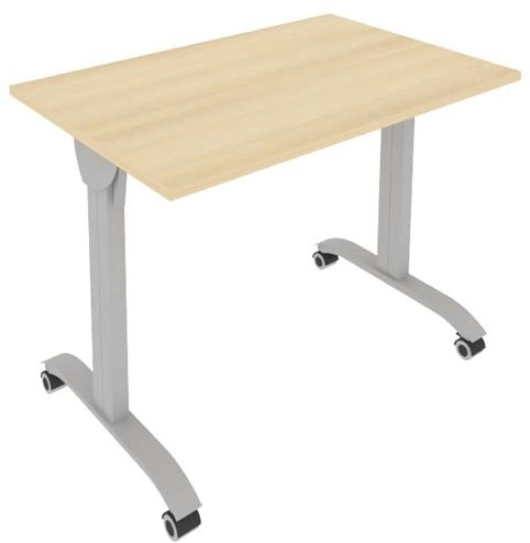 представляет собой сборную конструкцию из слолешницы, металлического каркаса и колесиков. Конструкция каркаса состоит из боковых опор с шарнирами и траверсами. Для защиты рук в процессе эксплуатации все каркасы комплектуются декоративными накладками - "шторками". Механический фиксатор позволяет надежно закрепить столешницу в горизонтальном и вертикальном положении. Каркас цвета серый. Толщина столешницы 22 мм, толщина кромки 2 мм.