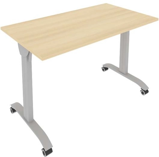 представляет собой сборную конструкцию из слолешницы, металлического каркаса и колесиков. Конструкция каркаса состоит из боковых опор с шарнирами и траверсами. Для защиты рук в процессе эксплуатации все каркасы комплектуются декоративными накладками - "шторками". Механический фиксатор позволяет надежно закрепить столешницу в горизонтальном и вертикальном положении. Каркас цвета серый. Толщина столешницы 22 мм, толщина кромки 2 мм.
