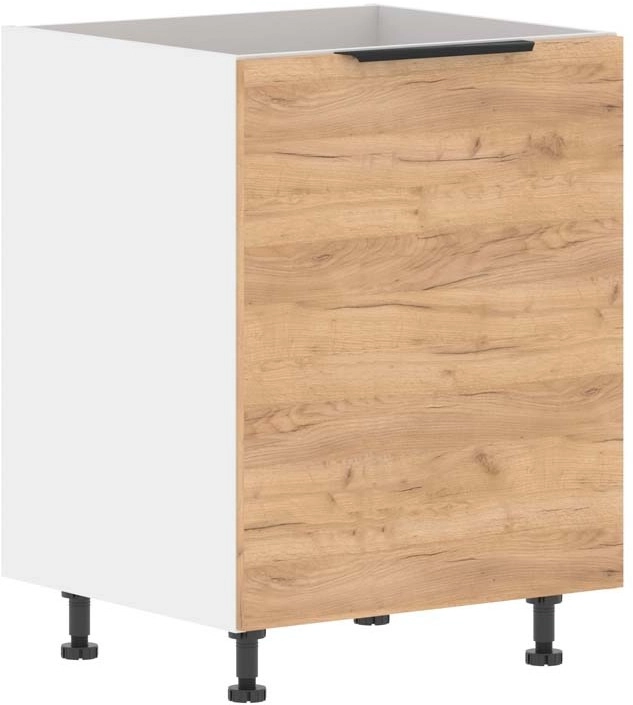 Каркас шкафа напольного под мойку из ЛДСП т.16 мм. Защита торцов каркасов, фасадов: кромка ABS 0,45 мм., меламин. Фасадом из ЛДСП т.18мм. Ручка профильная металлическая, цвет - черный. Шкаф комплектуется регулируемыми опорами H=100мм.