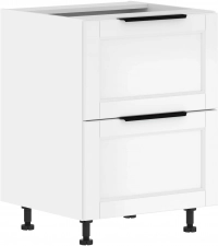 Каркас шкафа напольного из ЛДСП т.16 мм. Защита торцов: кромка ABS 0,45 мм., меламин. Наполнение - 2 больших ящика усиленной конструкции, с боковинами и дном из ЛДСП т.16 мм. Направляющие - шариковые (телескопические). Фасад из МДФ 19 мм, с фрезеровкой. Покрытие - высокостойкая полиуретановая эмаль. Ручка профильная металлическая, цвет - черный. Шкаф комплектуется регулируемыми опорами H=100 мм.
