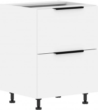 Каркас шкафа напольного из ЛДСП т.16 мм. Защита торцов: кромка ABS 0,45 мм., меламин. Наполнение - 2 больших ящика усиленной конструкции, с боковинами и дном из ЛДСП т.16 мм. Направляющие - шариковые (телескопические). Фасад из МДФ 19 мм, с фрезеровкой по периметру. Покрытие - высокостойкая полиуретановая эмаль. Ручка профильная металлическая, цвет - черный. Шкаф комплектуется регулируемыми опорами H=100 мм.