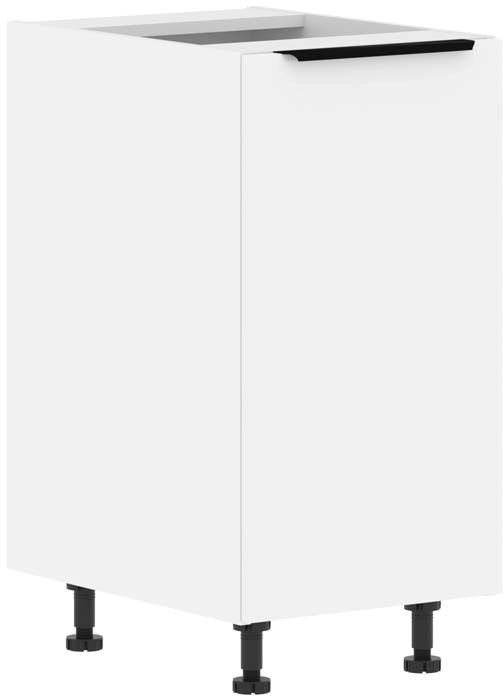 Каркас шкафа напольного из ЛДСП т.16 мм. Защита торцов: кромка ABS 0,45 мм., меламин. Фасад из МДФ 19 мм, с фрезеровкой по периметру. Покрытие - высокостойкая полиуретановая эмаль. Ручка профильная металлическая, цвет - черный. Шкаф комплектуется полкой и регулируемыми опорами H=100 мм.