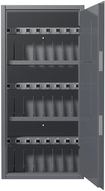Предназначен для хранения 24 автоматов ПП -91 «Кедр» Шкаф сертифицирован. Класс устойчивости к взлому S2 по ГОСТ 55148-2012 Полностью соответствует требованиям МВД для хранения оружия Приказ №288 МВД РФ от 12.04.1999 г, Законом об оружии 150 ФЗ от 13.11.96г. , Постановлению правительства №814 от 21.07.1998 г. Сварной корпус, толщина стали 3 мм Внутренние петли. Пассивные противовзломные ригеля Комплектуются двумя ключевыми сувальдными замками класс 2 ГОСТ 5089-2011 (по 2 ключа от каждого замка в комплекте) с опечатывающими устройствами. На внутренних сторонах дверей размещены 2 рамки для описи формата А4 Конструкция полок обеспечивает гарантированно надежное и устойчивое положение за счет собственного веса оружия, долговечность эксплуатации за счет отсутствия обжимных роликов На каждой полке имеются карманы под шильды для маркировки Анкерные отверстия для крепления шкафа к полу и к стене Поставляется в собранном виде Дополнительные опции под заказ возможно разместить две рамки под опись на внешней стороне двери возможно изменение внутреннего наполнения шкафа для различного сочетания оружия, боеприпасов и различных принадлежностей Дополнительные ключи
