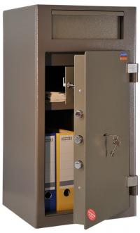 Депозитные сейфы для хранения наличных денег в магазинах, пунктах обмена, кафе и ресторанах, торговых точках, автозаправках, везде, где необходимо ограничить доступ к наличности, как от злоумышленников, так и от обслуживающего персонала. Выручка или документы закладываются в сейф через лоток, а открыть сейф и извлечь содержимое может только администратор (инкассатор). Конструкция сейфа не позволяет изъять содержимое через лоток (установлено антифишинговое устройство), а дверь защищена надежным замком, таким образом, депозитный сейф практически исключает хищения. Также предусмотрена возможность крепления к полу анкерным болтом. Это исключает хищения ценностей вместе с сейфом.