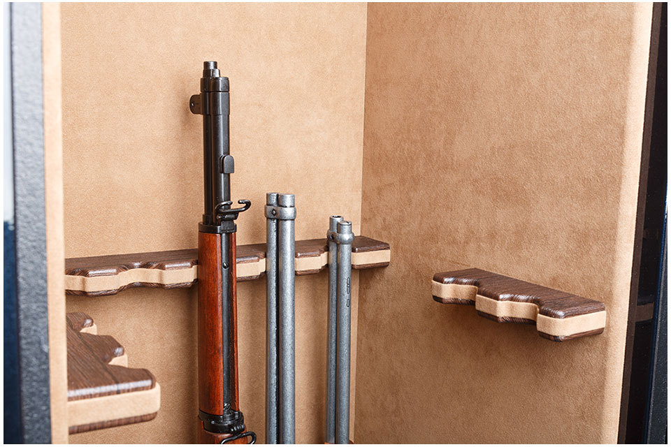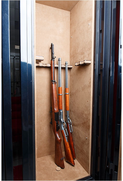 Сейфы серии JAGER создаются на базе серийной серии Гарант Евро и могут быть изготовлены как в исполнении для хранения оружия, так и для хранения документов, ценных вещей и многого другого. Внутреннее оснащение, цвет корпуса, рисунок определяются покупателем. Сейф сохранит содержимое от огня и взлома. JAGER 1660 - универсальный сейф для оружия и/или документов. КОНСТРУКТИВНЫЕ ОСОБЕННОСТИ: комплектуются электронными замками 3-х сторонняя ригельная система запирания защита замка и ригелей от высверливания и выбивания предусмотрена возможность анкерного крепления к полу съемные полки максимальное количество ложементов на 10 стволов ОТДЕЛКА: тип покрытия – лак; базовый цвет: черный с рисунком внутренняя отделка – алькантара (искусственное замшевое покрытие); базовый цвет: светло-коричневый под заказ возможно: замена алькантары на эко-кожу; изменение цвета покрытия и внутренней отделки; покрытие замка 24-каратным золотом; установка вертикальной перегородки и полок, выполненных из дерева