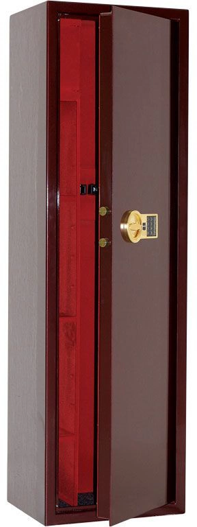 Предназначен для хранения огнестрельного оружия. Сейфы соответствуют требованиям ст.59 Постановления правительства РФ № 814 от 21 июля 1998 года «О мерах по регулированию гражданского и служебного оружия и патронов к нему на территории РФ». Устойчивость к взлому: соответствует классу оружейных сейфов А1 в соответствии с требованиями ГОСТ Р 56367-2015 максимальная высота ружья - 1385 мм комплектуются электронными замками PS 300/E01 (ПРОМЕТ), покрытыми 24-каратным золотом (Gold) 3-х сторонняя ригельная система запирания защита замка и ригелей от высверливания и выбивания комплектуются электронными замками PS 300/E01 (ПРОМЕТ), покрытыми 24-каратным золотом (Gold) оборудованы патронным отделением, запирающимся на ключ и ложементами для ружей предусмотрена возможность анкерного крепления к полу и стене тип покрытия: лак, внутренняя отделка – бархат базовые цвета: черный, вишня. Возможна окраска в другие цвета по согласованию с производителем любой сейф из номенклатуры ПРОМЕТ может быть исполнен в комплектации GOLD по специальному запросу
