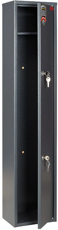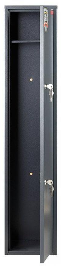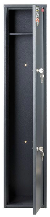 Предназначен для хранения огнестрельного оружия. Сейфы соответствуют требованиям ст.59 Постановления правительства РФ №814 от 21 июля 1998 года «О мерах по регулированию гражданского и служебного оружия и патронов к нему на территории РФ». максимальная высота ствола - 863 мм комплектуются двумя ключевыми замками наличие анкерных отверстий для крепления сейфа к стене * линейный размер от поверхности дна до патронного отделения