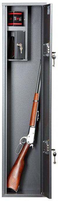 Предназначен для хранения огнестрельного оружия. Сейфы соответствуют требованиям ст.59 Постановления правительства РФ №814 от 21 июля 1998 года «О мерах по регулированию гражданского и служебного оружия и патронов к нему на территории РФ». максимальная высота ствола - 1278 мм комплектуются двумя ключевыми замками наличие анкерных отверстий для крепления сейфа к стене