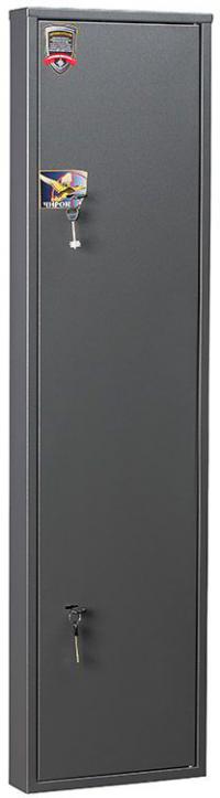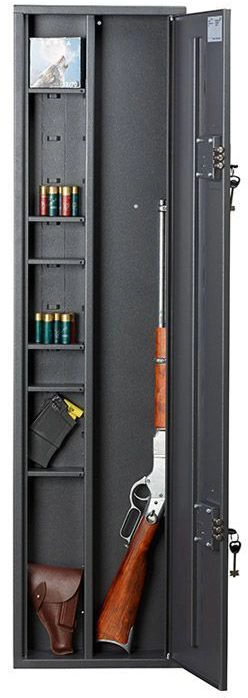 Предназначен для хранения огнестрельного оружия. Сейфы соответствуют требованиям ст.59 Постановления правительства РФ №814 от 21 июля 1998 года «О мерах по регулированию гражданского и служебного оружия и патронов к нему на территории РФ». максимальная высота ствола - 1380 мм комплектуются двумя ключевыми замками наличие анкерных отверстий для крепления сейфа к стене