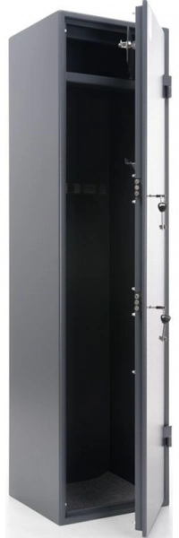 Предназначен для хранения огнестрельного оружия. Сейфы соответствуют требованиям ст.59 Постановления правительства РФ № 814 от 21 июля 1998 года «О мерах по регулированию гражданского и служебного оружия и патронов к нему на территории РФ». максимальная высота ружья - 1430 мм оборудованы патронным отделением, запирающимся на ключ. Размер - 147х374х150 Комплектуются двумя ключевыми замками Толщина металла корпуса и двери – 3 мм наличие анкерных отверстий для крепления сейфа к стене.