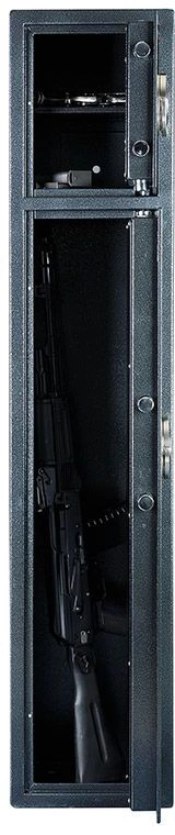 Предназначен для хранения огнестрельного оружия и патронов к нему. Сейфы соответствуют требованиям ст.59 Постановления правительства РФ № 814 от 21 июля 1998 года «О мерах по регулированию гражданского и служебного оружия и патронов к нему на территории РФ». Соответствуют Классу А.1 оружейных сейфов в соответствии с требованиями ГОСТ Р 56367-2015. толщина металла корпуса – 3 мм; толщина металла двери – 5 мм 3-х сторонняя ригельная система запирания (диаметр ригеля 18 мм) оборудованы патронным отделением (трейзер), запирающимся на ключ (соответствующий 3 классу по ГОСТ Р 5089-2003 или замок не ниже класса А по ГОСТ 51053-2012), полками и ложементами для ружей, ковриком комплектуются двумя кодовыми электронными замками PS 310/E31 (Промет) наличие анкерных отверстий для крепления сейфа к полу и стене максимальная высота ружья 983мм