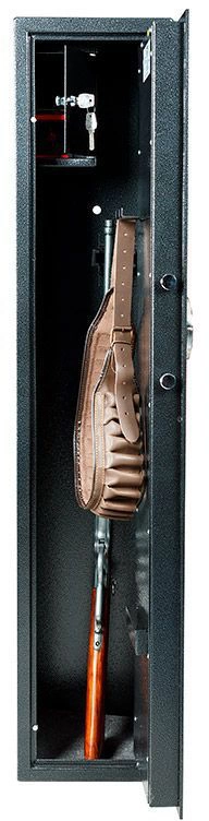 Предназначен для хранения огнестрельного оружия и патронов к нему. Сейфы соответствуют требованиям ст.59 Постановления правительства РФ № 814 от 21 июля 1998 года «О мерах по регулированию гражданского и служебного оружия и патронов к нему на территории РФ». Соответствуют Классу А.1 оружейных сейфов в соответствии с требованиями ГОСТ Р 56367-2015. толщина металла корпуса – 3 мм; толщина металла двери – 5 мм 3-х сторонняя ригельная система запирания (диаметр ригеля 18 мм) оборудованы патронным отделением (трейзер), запирающимся на ключ (соответствующий 3 классу по ГОСТ Р 5089-2003 или замок не ниже класса А по ГОСТ 51053-2012), полками и ложементами для ружей, ковриком комплектуются кодовым электронным замком PS 310/E31 (Промет) наличие анкерных отверстий для крепления сейфа к полу и стене максимальная высота ружья 1283мм конструкция патронного отделения позволяет размещать оружие, задействуя всю высоту сейфа