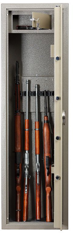 Предназначен для хранения огнестрельного оружия. Сейфы соответствуют требованиям ст.59 Постановления правительства РФ № 814 от 21 июля 1998 года «О мерах по регулированию гражданского и служебного оружия и патронов к нему на территории РФ» и приказом МВД РФ №308 от 14.07.2003. Устойчивость к взлому: соответствует классу оружейных сейфов А2 в соответствии с требованиями ГОСТ Р 56367-2015. максимальная высота ствола - 1435 мм толщина металла корпуса – 3 мм; толщина металла двери – 10 мм 3-х сторонняя ригельная система запирания оборудованы патронным отделением (трейзер), запирающимся на ключ и ложементами для ружей конструкция патронного отделения позволяет размещать оружие, задействуя всю высоту сейфа комплектуются электронным замком PS 310/E31 (Промет) наличие анкерных отверстий для крепления сейфа к полу и стене