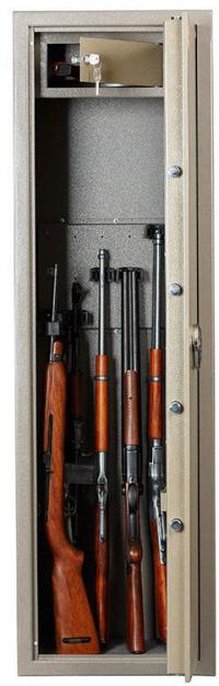 Предназначен для хранения огнестрельного оружия. Сейфы соответствуют требованиям ст.59 Постановления правительства РФ № 814 от 21 июля 1998 года «О мерах по регулированию гражданского и служебного оружия и патронов к нему на территории РФ» и приказом МВД РФ №308 от 14.07.2003. Устойчивость к взлому: соответствует классу оружейных сейфов А2 в соответствии с требованиями ГОСТ Р 56367-2015. максимальная высота ствола - 1435 мм толщина металла корпуса – 3 мм; толщина металла двери – 10 мм 3-х сторонняя ригельная система запирания оборудованы патронным отделением (трейзер), запирающимся на ключ и ложементами для ружей конструкция патронного отделения позволяет размещать оружие, задействуя всю высоту сейфа комплектуются электронным замком PS 310/E31 (Промет) наличие анкерных отверстий для крепления сейфа к полу и стене