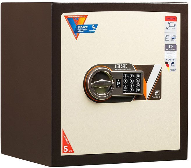 Предназначены для защиты документов и ценностей от несанкционированного доступа (взлома). одобрены ассоциацией российских производителей и поставщиков сейфов и других инженерно-технических средств безопасности. рекомендованная сумма хранения денег до 2 млн. руб. для физических лиц и до 500 тыс. руб. для юридических лиц. устойчивость к взлому: ГОСТ Р 50862-2017, класс 1 (ГОСТ Р); EN 1143-1, Grade I (IMP) 3-х сторонняя ригельная система запирания защита ригелей от высверливания и выбивания защита замка от высверливания усиленная лицевая панель - толщина лицевой панели - 10 мм; общая толщина двери – 56 мм толщина боковых стенок - 24 мм комплектуется электронным кодовым замком PS 310/E01 наличие анкерного крепления к полу, стене. Анкерные болты в комплекте * Внимание Гарантийный срок 5 лет предоставляется при условии прохождения планового техобслуживания. Подробнее с условиями прохождения и регламентом можно ознакомиться далее в разделе «Техническое обслуживание и ремонт» Без прохождения техобслуживания – гарантия 1 год