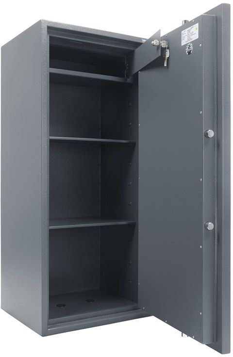 Предназначен для защиты документов и ценностей от несанкционированного доступа (взлома). Рекомендованная сумма хранения денег до 1 млн. руб. для физических лиц. Устойчивость к взлому: ГОСТ Р 50862-2017 - класс 1 (ГОСТ Р). огнестойкость: класс 30Б (ГОСТ Р) при заливке двери и корпуса сейфа используется тяжелый бетон корпус сейфа и дверь заливные; толщина стенок - 38 мм 3-х сторонняя ригельная система запирания; с увеличенным ходом горизонтальных ригелей защита замка от высверливания система блокировки ригельного механизма при выбивании замка комплектуются ключевым замком KABA MAUER (Германия) предусмотрена возможность двух анкерных креплений к полу, анкерный болт в комплект не входит опция: дополнительные полки