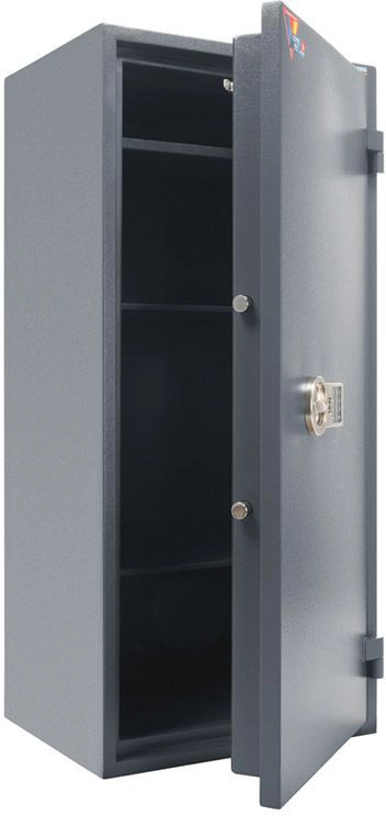 Предназначен для защиты документов и ценностей от несанкционированного доступа (взлома). Рекомендованная сумма хранения денег до 1 млн. руб. для физических лиц. Устойчивость к взлому: ГОСТ Р 50862-2017 - класс 1 (ГОСТ Р). огнестойкость: класс 30Б (ГОСТ Р) при заливке двери и корпуса сейфа используется тяжелый бетон корпус сейфа и дверь заливные; толщина стенок - 38 мм 3-х сторонняя ригельная система запирания; с увеличенным ходом горизонтальных ригелей защита замка от высверливания система блокировки ригельного механизма при выбивании замка комплектуются электронным кодовым замком PS 310/E01 (Промет) предусмотрена возможность двух анкерных креплений к полу, анкерный болт в комплект не входит опция: дополнительные полки