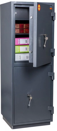 Предназначен для защиты документов и ценностей от несанкционированного доступа (взлома). Рекомендованная сумма хранения денег до 1 млн. руб. для физических лиц. Устойчивость к взлому: ГОСТ Р 50862-2017 - класс 1 (ГОСТ Р). при заливке двери и корпуса сейфа используется тяжелый бетон корпус сейфа и дверь заливные; толщина стенок - 38 мм 3-х сторонняя ригельная система запирания; с увеличенным ходом горизонтальных ригелей защита замка от высверливания система блокировки ригельного механизма при выбивании замка комплектуются двумя ключевыми замками KABA MAUER (Германия) предусмотрена возможность двух анкерных креплений к полу, анкерный болт в комплект не входит опция: дополнительные полки