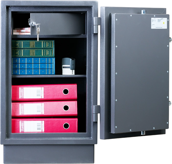 Предназначен для защиты документов и ценностей от несанкционированного доступа (взлома). Рекомендованная сумма хранения денег до 1 млн. руб. для физических лиц. Устойчивость к взлому: ГОСТ Р 50862-2017 - класс 1 (ГОСТ Р). сейф имеет демпферную юбку высотой 50 мм внутренние размеры предусматривают горизонтальное и вертикальное хранение папок «Корона» при неустановленной полке при заливке двери и корпуса сейфа используется тяжелый бетон корпус сейфа и дверь заливные; толщина стенок - 37 мм 3-х сторонняя ригельная система запирания; с увеличенным ходом горизонтальных ригелей защита замка от высверливания система блокировки ригельного механизма при выбивании замка комплектуются ключевым замком KABA MAUER (Германия) предусмотрена возможность двух анкерных креплений к полу, анкерный болт в комплект не входит