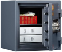 Предназначен для сохранности документов и ценностей при пожаре и взломе. Рекомендованная сумма хранения денег до 6.5 млн. руб. для физических лиц и до 2 млн. руб. для юридических лиц. Устойчивость к взлому по ГОСТ Р 50862-2017: класс 2 (ГОСТ Р). Огнестойкость: ГОСТ Р 57384-2017: класс 60Б (ГОСТ Р). при заливке двери и корпуса сейфа используется запатентованная система армирования огнестойкого бетона 3-х сторонняя усиленная ригельная система запирания защита замка и ригелей от высверливания и выбивания система блокировки ригельного механизма при выбивании замка тепловой замок, усиленный огнестойким уплотнителем толщина защитного слоя двери – 33мм, общая толщина двери - 105мм толщина боковых стенок - 77мм; толщина задней стенки – 51мм комплектуются электронным кодовым замком PS 610/E36 наличие анкерного крепления к полу, анкерный болт в комплекте