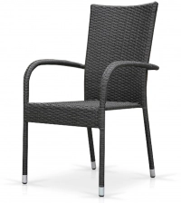 _x000D_ Плетеный стул на прочном стальном каркасе, выполненный из искусственного ротанга темно-серого цвета. Стул имеет подлокотники и удобную высокую спинку. Подойдет для использования в кафе, ресторане и загородном доме.