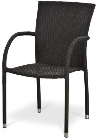 _x000D_ Стул выполнен на стальном каркасе с плетением из искусственного ротанга коричневого цвета. Имеет высокую спинку и подлокотники.