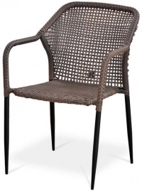 _x000D_ Плетеный стул с подлокотниками из искусственного ротанга палевого цвета. Имеет изящные ножки и необычное и стильное плетение спинки.