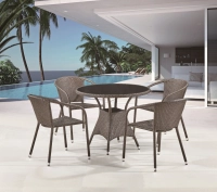 Стол: D90xH74 см. Стекло: закаленное- 5мм, стекло внутри столешницы , цвет -черный. Кресло: W58xD60xH78 см. Каркас: сталь. Материал: искусственный ротанг Цвет: brown. Объем и вес комплекта: 0,63м3,41кг.
