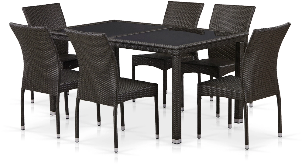 _x000D_ Стoл: L160хW90xH74 см, Стекло: закаленное- 6мм, стекло сверху, цвет - бронза, Стул:: W45xD56xH92 см. (6 шт. ), Каркас: труба сталь D25,Материал: искусственный ротанг. Цвет: Brown, Объем и вес комплекта:, 1,0 м3,65 кг