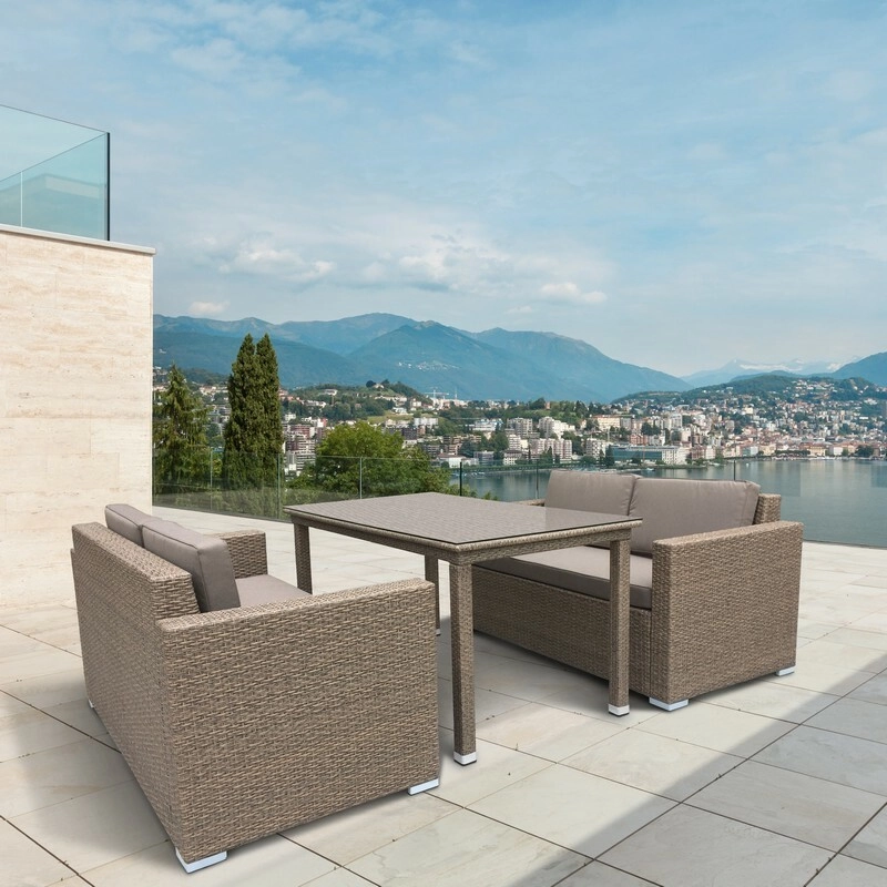 _x000D_ Большой плетеный стол и два болших плетеных дивана подчеркнут благородство вкуса своего хозяина. Этот набор организует комфортное и эстетичное место для отдыха. Прочный стальной каркас оплетен качественным искусственным ротангом светлого оттенка, который имитирует натуральные текстуры.