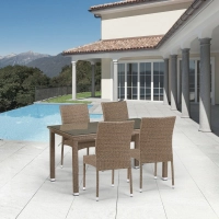 Простые лаконичные формы комплекта дополняет интересные цвет и текстура ротанга. Легкие, но прочные стулья, выдерживают нагрузку до 120 кг. Столешница покрыта безопасным ударопрочным закаленным стеклом, через которое видно интереный рисунок плетения самой столешницы.