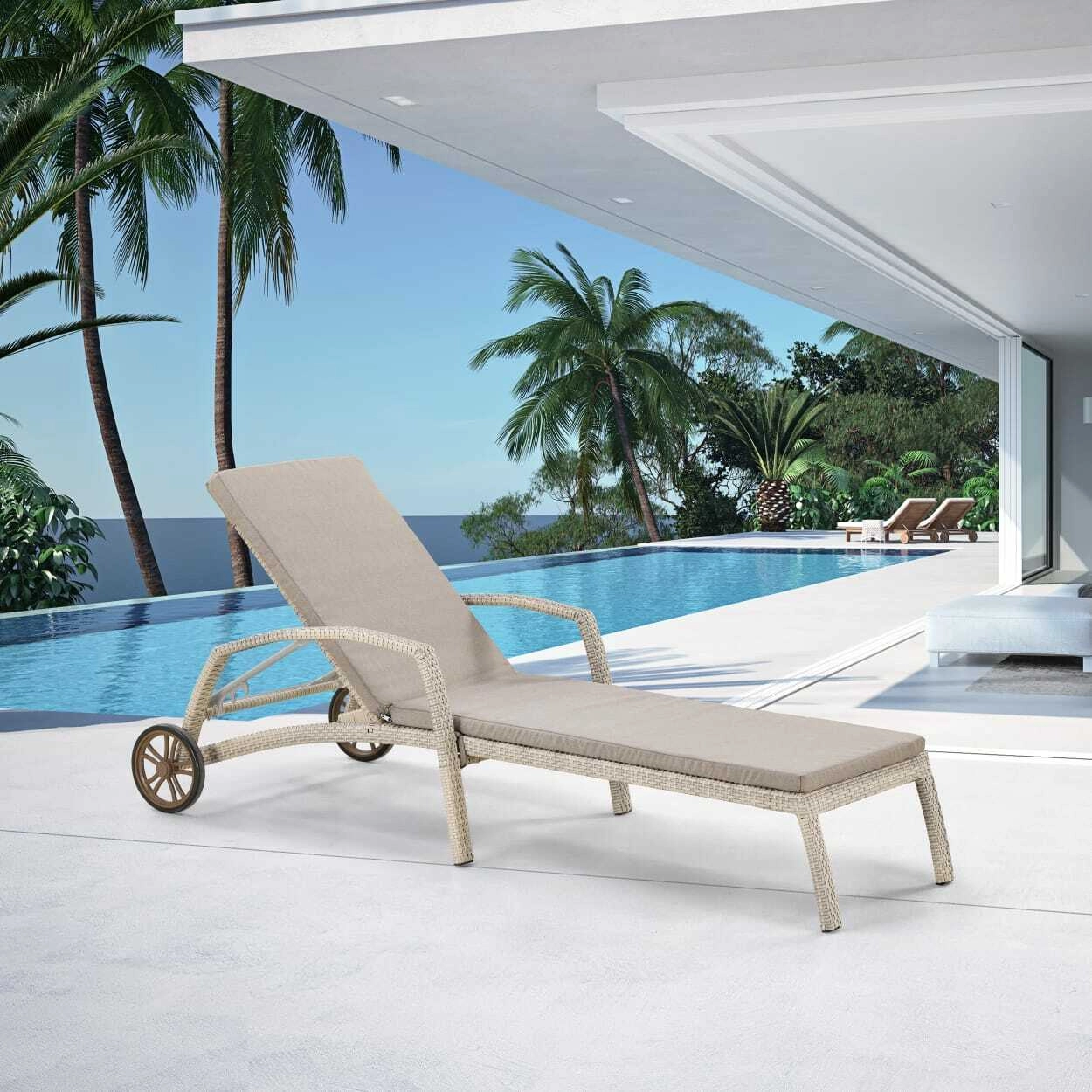 Шезлонг-лежак плетеный A35C2-W85 Latte с матрасом