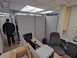 Бэнч-системы Onix цвет белый бриллиант-антрацит. Зонирование выполнено акустическими перегородками R-LINE г. Москва