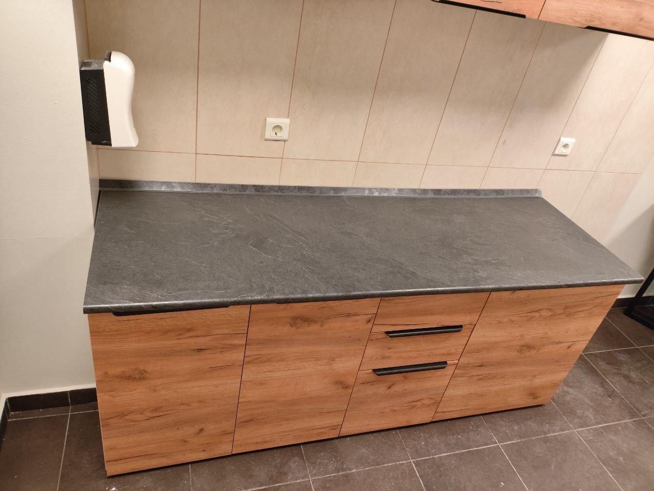 Офисная модульная кухня ALVALINE модель CORSICA в цвете Дуб Бофорд - Белый, столешница цвет Луна