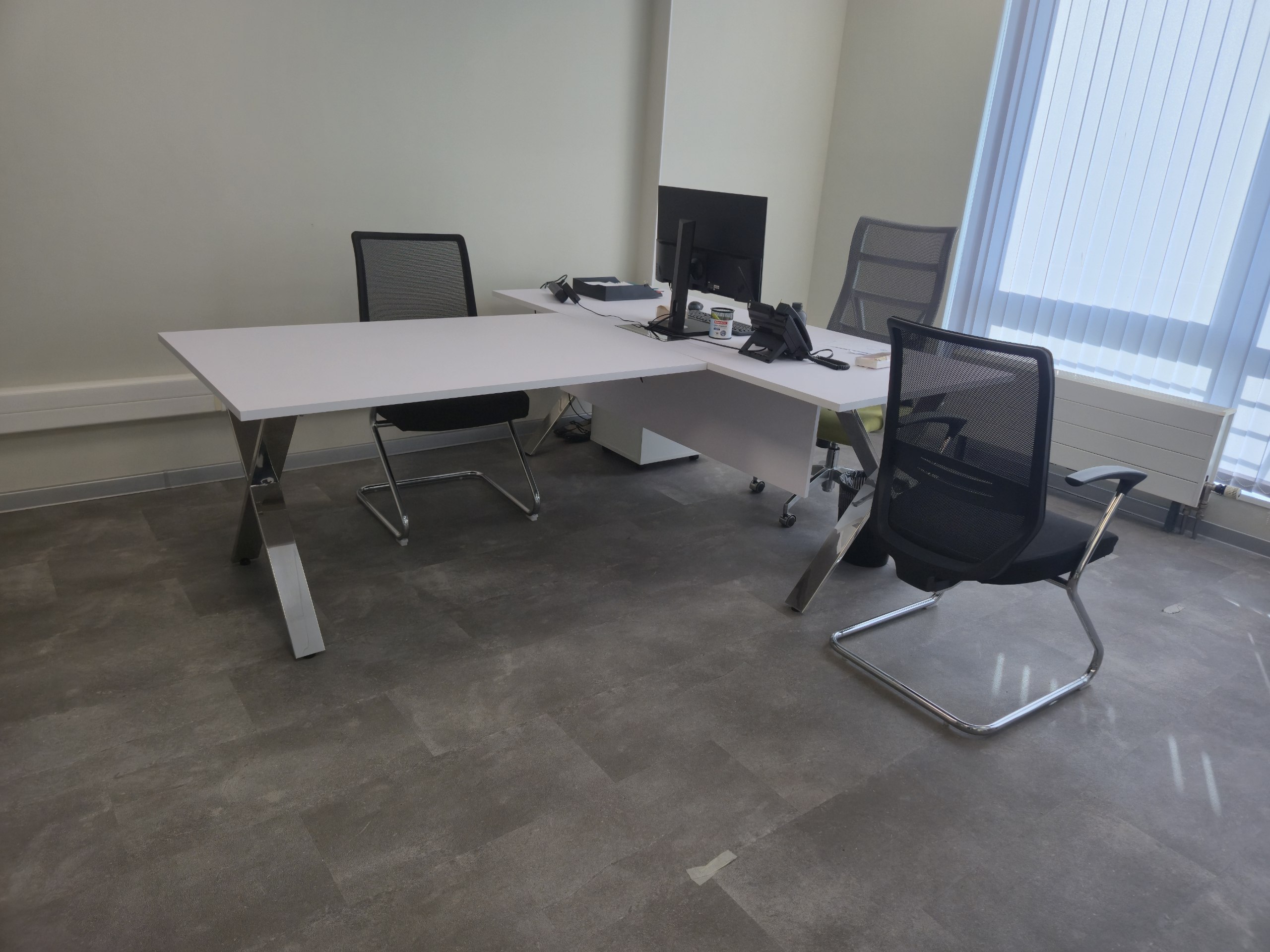 Кабинет CROSS а цвете Белый Бриллиант на металлических опорах из полированной нержавеющей стали, г. Москва