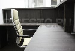 В этом проекте стояла задача установки стойки ресепшн на 3 рабочих места. Ширина коридора всего 300см. что достаточно мало для того, что бы разместить стойку и обеспечить достаточный проход для сотрудников. Усугубляло ситуацию и наличие пожарного щита на противоположной стене, сокращавшего и без того узкий проход ещё на 13см. Требования заказчика обязывали установить стойку секретаря в цвете венге и обеспечить проход не менее 90см. Так же всю задачу требовлось решить за короткий срок (2 недели), что само по себе не подразумевало изготовление стойки на заказ. Из стандартной серийной продукции находящейся на складе оптимальным образом подошла стойка секретаря "Васанта"