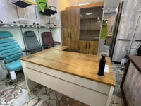 Комплект кабинета LAVANA Таксония медовая - Бежевый песок (выставочный образец) Стол рабочий, гардероб, шкаф высокий со стеклом, тумба с пуфом.