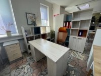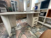 Комплект кабинета LEMO_Таксония Айвори (выставочный образец) Стол рабочий с опорной тумбой, стеллаж открытый , гардероб , стеллаж полузакрытый . Элементы декора .