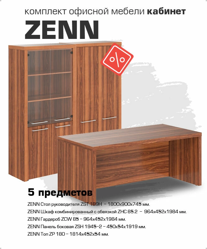 Комплект кабинета ZENN Орех Даллас (выставочный образец) Стол+2шкафа
