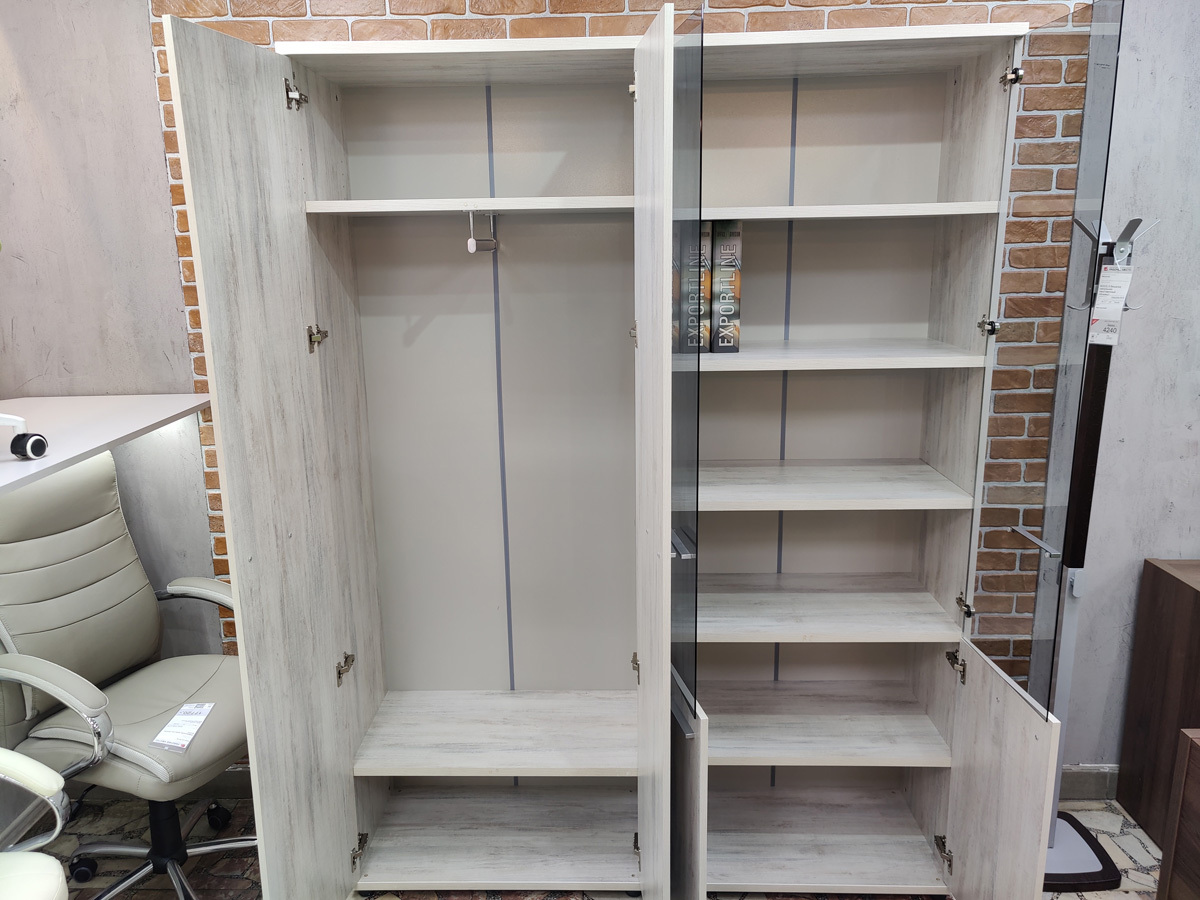 Комплект офисной мебели Yuna Ясмунд (выставочный образец) Стол , тумба, шкаф комбинированный со стеклом, гардероб.