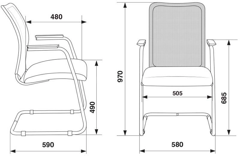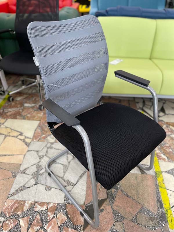 Кресло офисное Бюро CH-599AV серое TW-32K03/черное TW-11 на полозьях (по 2 шт.) (выставочный образец)